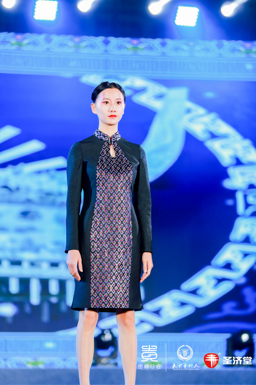 圖片來源:天下貴州人 由貴商總會發(fā)起,來自浙江、黑龍江、吉林、遼寧、山東、湖北、四川、湖南、陜西、江西、深圳市等十三個省市總商會共同發(fā)表了《十三省市商會助力貴州高質(zhì)量發(fā)展貴陽宣言》。 《開放的貴州歡迎您·天下貴州人新春聯(lián)歡晚會》的節(jié)目中,“琇”品牌作為表演嘉賓第一次在大型活動上走秀,總共展示了30多套融入苗繡、馬尾繡、錫繡等刺繡的當(dāng)代服裝,這是一場非遺手工藝與時尚服裝碰撞的大秀!